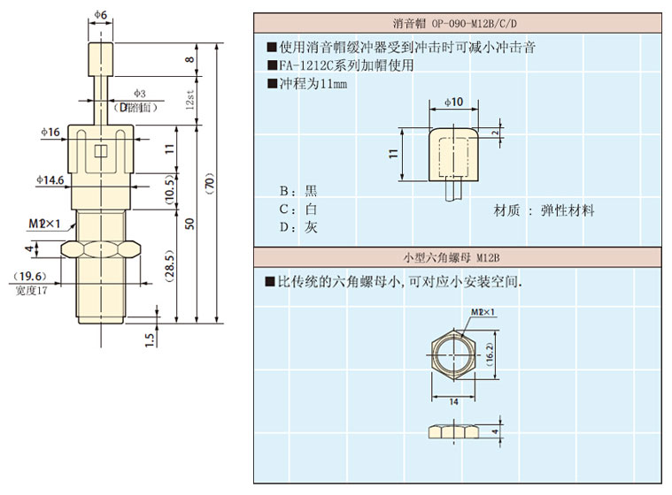 *请注意不要把本体和螺母拧得过紧。请按照使用说明书上记载的1.5N.m安装扭矩为标准。但是,请在Φ14.6和螺纹中间部位固定,请以1N.m安装扭矩为标准拧紧。