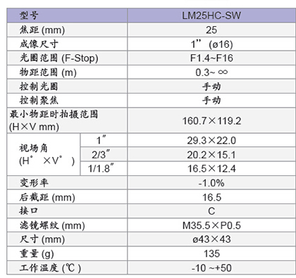 214548/LM25HC-SW/LM25HC-SW 1"百万像素近红外定焦镜头