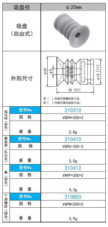 221398/VAPH-20C-2/VAP-20C-2系列直径20mm自由式吸盘