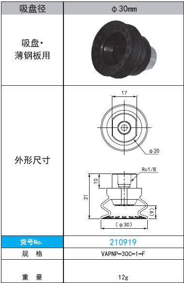 221440/VAPNP-30C-1-F/VAPNP-30C-1-F薄型钢板用吸盘