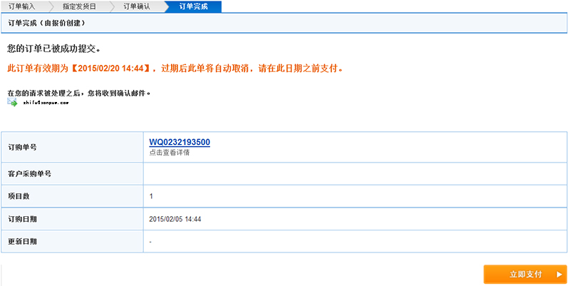 2. 电子目录页面提交订单后,在右上方点击【立即支付】就可以直接支付啦。