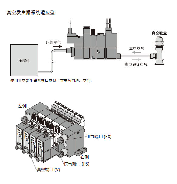 真空破坏空气的流量控制加上压力的控制,能防止工作件被吹掉; 种类繁多的性能允许该真空装置适应不同的需要; 真空破坏回路中设有释放机能(释放额外的压力),实现了更短的真空破坏时间.