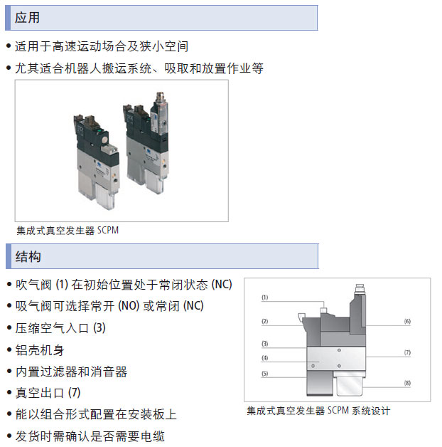 适用于高速运动场合及狭小空间; 尤其适合机器人搬运系统、吸取和放置作业等.