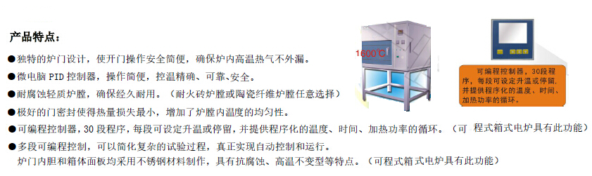 独特的炉门设计,确保炉内高温热气不外漏;微电脑PID控制器,控温精确、可靠、 安全;耐腐蚀轻质炉膛;炉门内胆和箱体面板均采用不锈钢材料制作,具有抗腐蚀、高温不变型等特点。