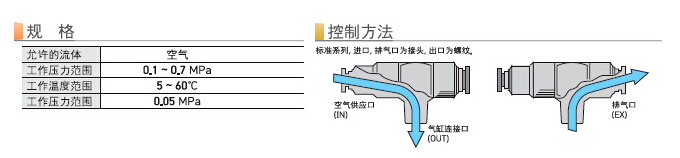 对应气缸的高速驱动„ 可控制气缸的高速驱动;带有节流功能的快速排气阀;带有消音器,减轻排气声音;无需拆下旁阀即可更换消音器元件。