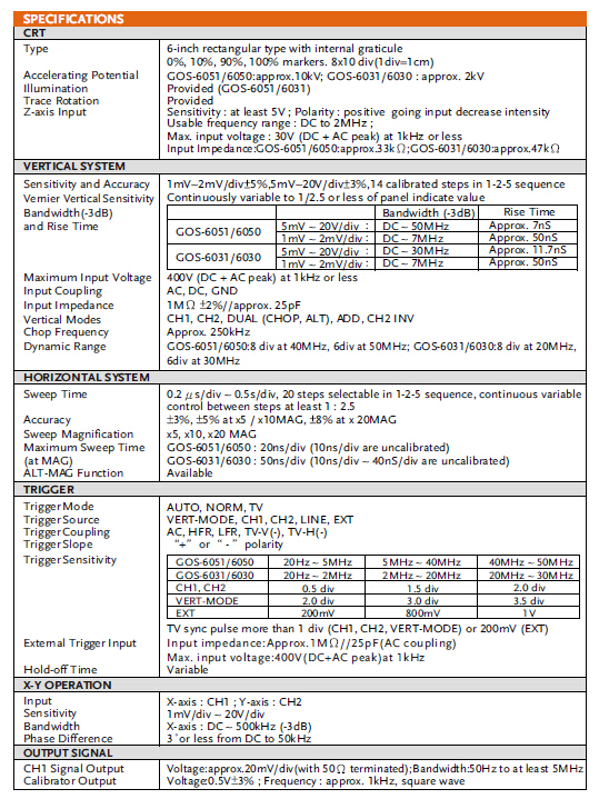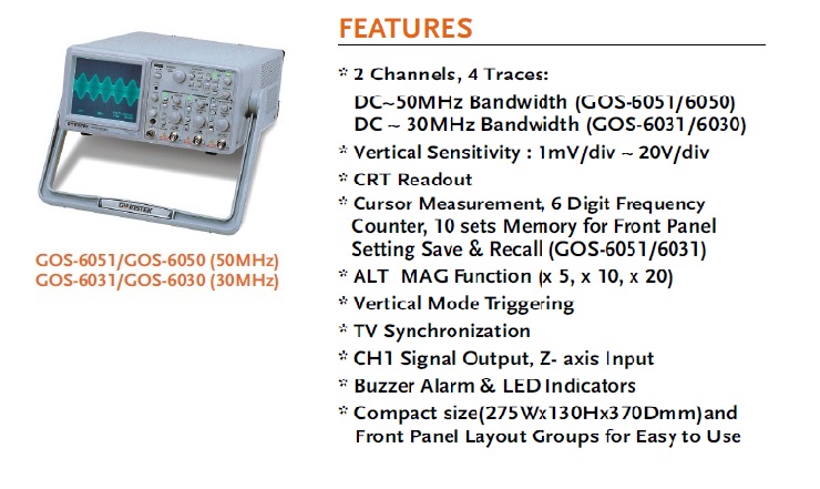 GOS-6031系列 30MHz模拟示波器