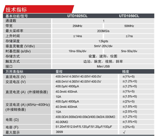 118514/UTD1050CL/UTD1000L系列 手持式数字存储示波器