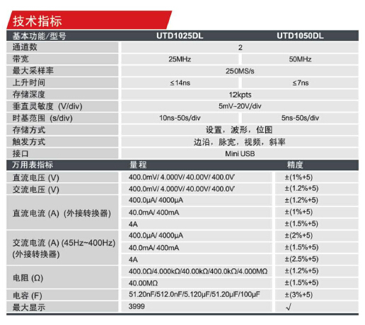 118516/UTD1050DL/UTD1000L系列 手持式数字存储示波器