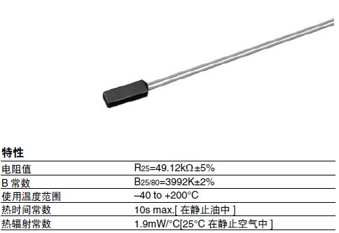 优异的耐ATF特性;使用温度范围:-40℃~200℃;通过小型化实现的高速应答性;EV、HEV、PHEV的驱动马达的线圈温度检测;各种工业用伺服马达的内部温度检测