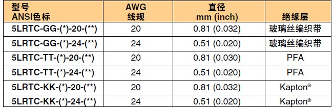 PFA绝缘线,最高使用温度260℃;