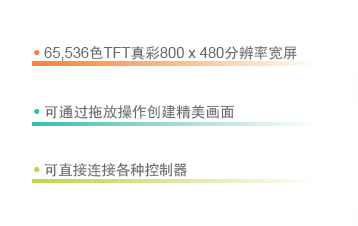 高达65536色TFT真彩,800x480分辨率宽频,简便易用功能操作、可连接各种控制器。