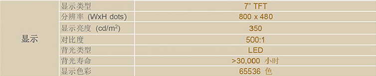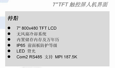 7" TFT LCD,无风扇冷却系统、LED背光。