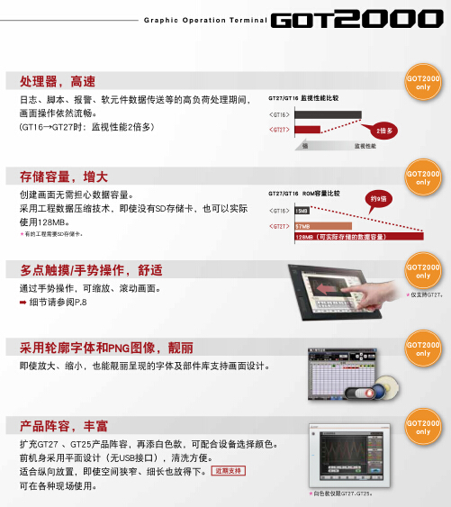 高速处理器,大容量储存,简单方便的多点触摸和手势操作、高效引用画面资源。