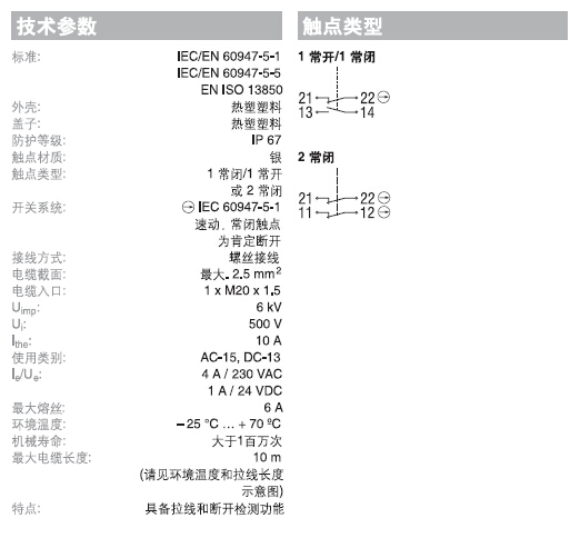热塑料外壳,双重绝缘,2触点,带位置指示,有很大的接线空间;