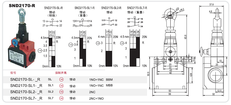 SND2170-R系列塑料壳安全拉绳开关(双向动作式)