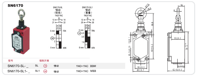 SN6170系列大型金属壳安全拉绳开关(双向动作式)