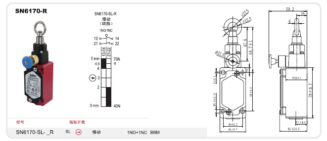 SN6170-R系列大型金属壳安全拉绳开关(双向动作式)