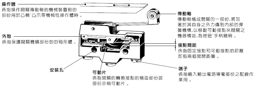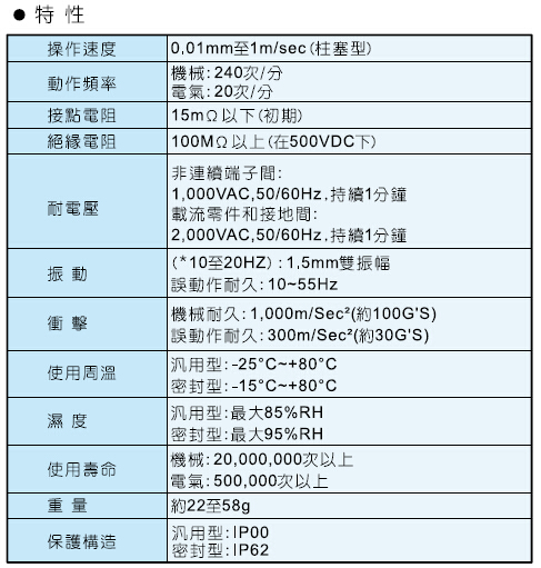 引动器种类广泛,且有动作位置可调整之设计(如TM1701); 高开闭容量(15A); 高精确度; 广泛操作速度范围.