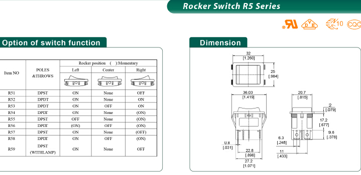 121153/R515KKET0FA/R5系列高容量翘板开关