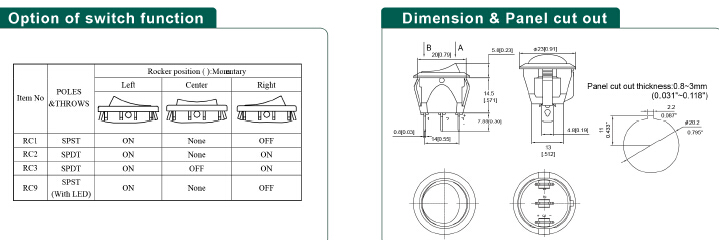 121188/RC35KKET00B/RC系列圆形翘板开关