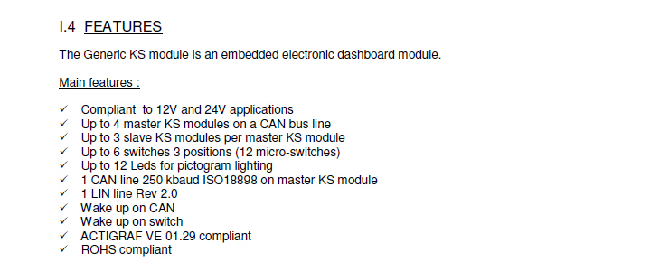 多种颜色选择,激光蚀刻标志,带灯或不带灯; 完全分离的电子和机械部件; 可以集成的多路复用系统,CAN总线,增加可靠性,灵活和可扩展的系统,降低了布线成本.