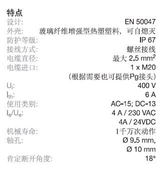 玻璃纤维增强型热塑塑料,可自熄灭; 机械寿命长;