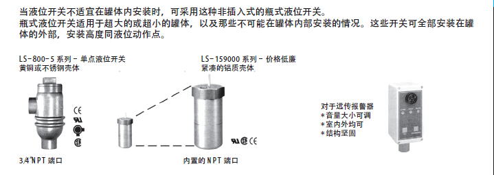 紧凑铝质壳体,非插入式的瓶式液位开关.