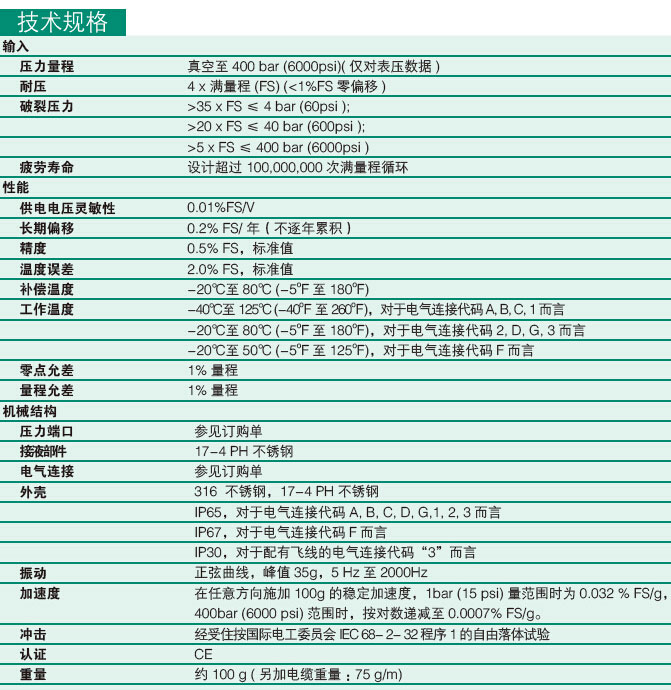 表压、真空和复合压力型; 通用型和冲洗型外壳; 薄膜较厚,结构上使耐压性能提高; 电压输出型和电流输出型.