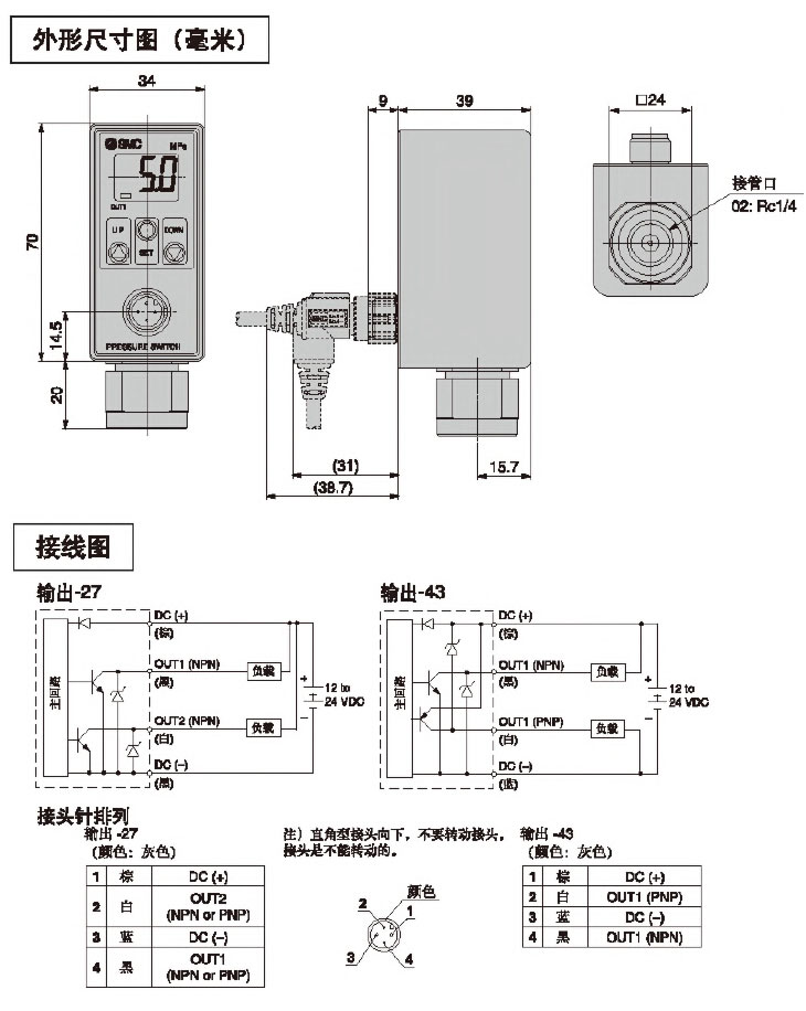 105653/ISE75H-02-27-S/ISE70/75/75H系列高压用2色显示数字式压力开关