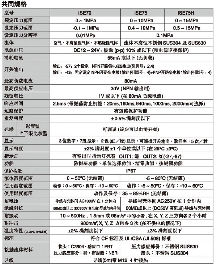 105652/ISE75-02-27-S/ISE70/75/75H系列高压用2色显示数字式压力开关