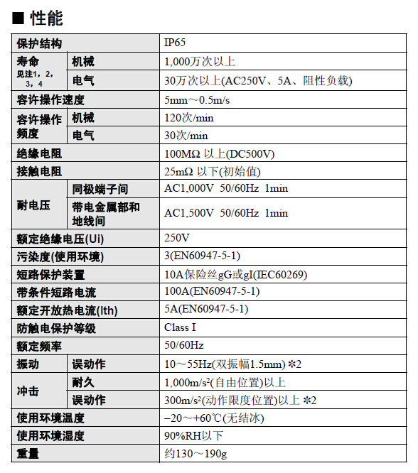 小型纵型亚洲标准尺寸; 纵型限位开关的1/3的小型化设计; 端子部全开放构造,便于布线; RoHS对应; 保护构造丨P65.