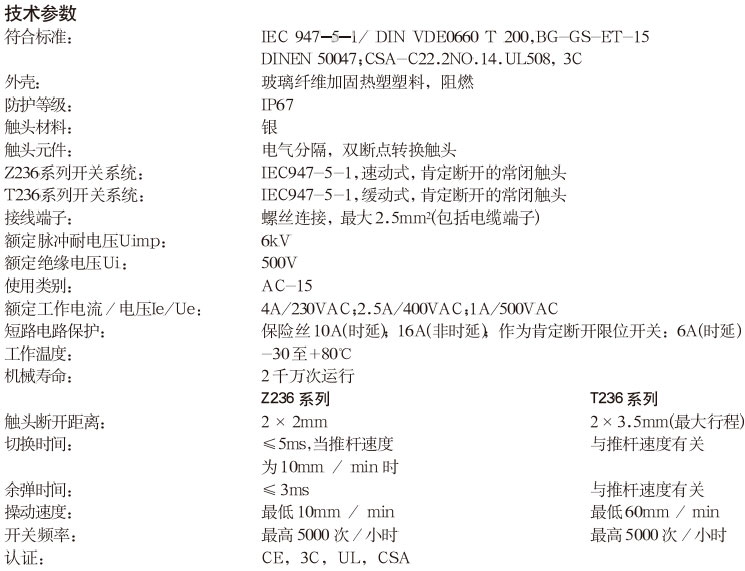 塑料外壳; 防护等级IP6; 二触头; 速动式和缓动式.