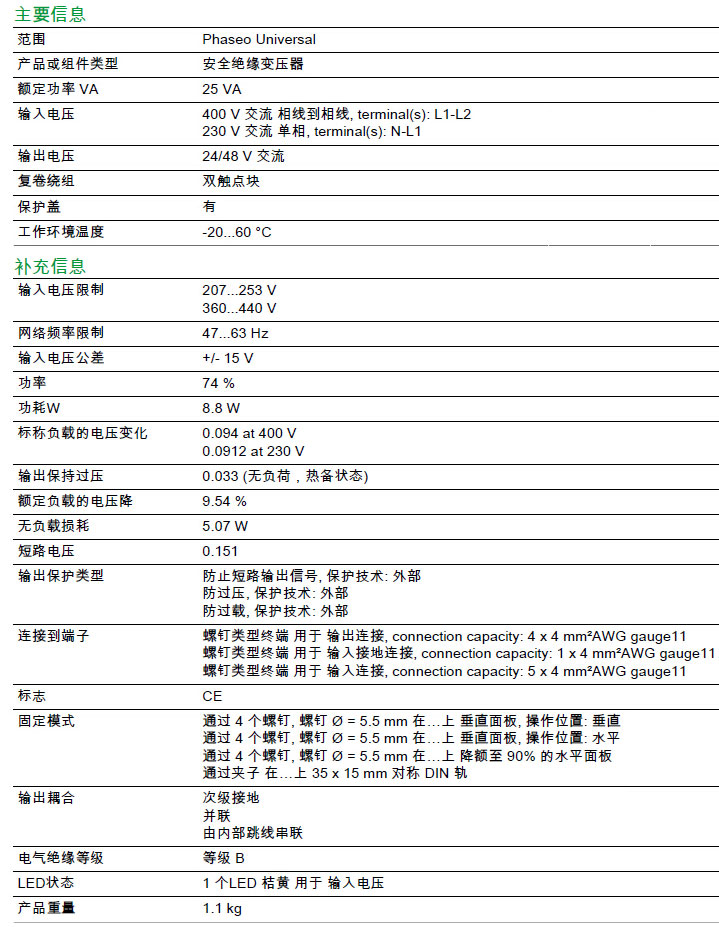 120851/ABT7PDU025G/ABT7PDU系列双触点块,安全绝缘电压变压器