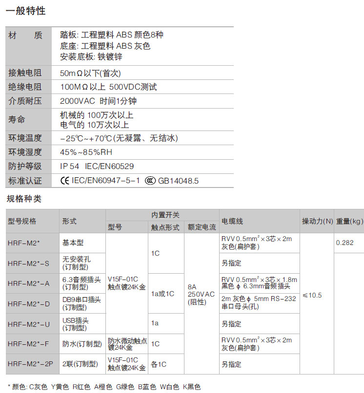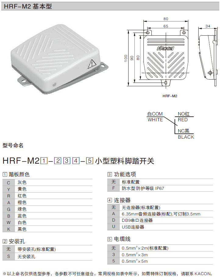 标准配置RVV 0.5mm²×3芯×2m电缆线.