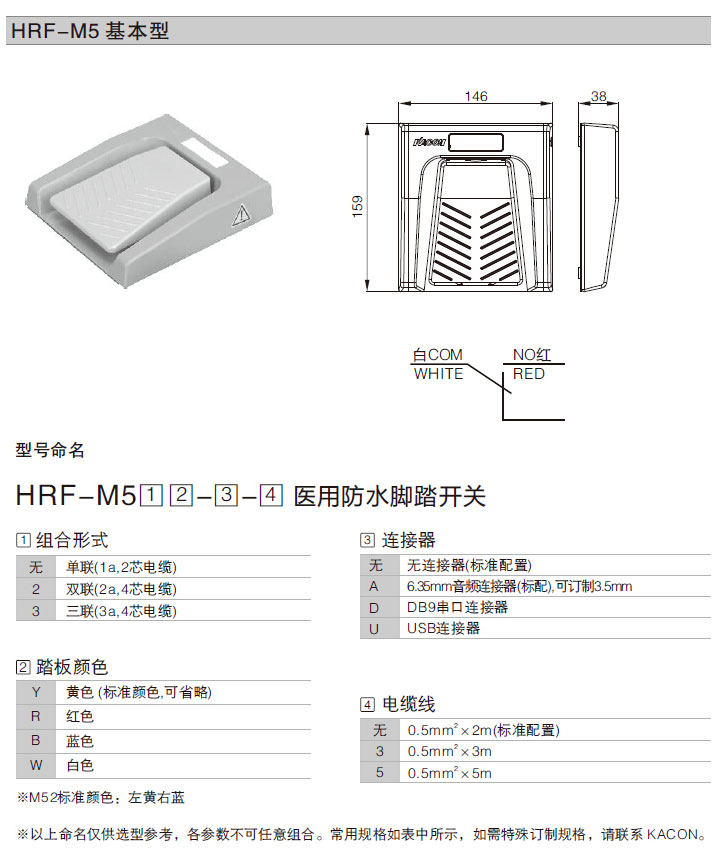 标准配置RVV 0.5mm²×2芯×2m电缆线.
