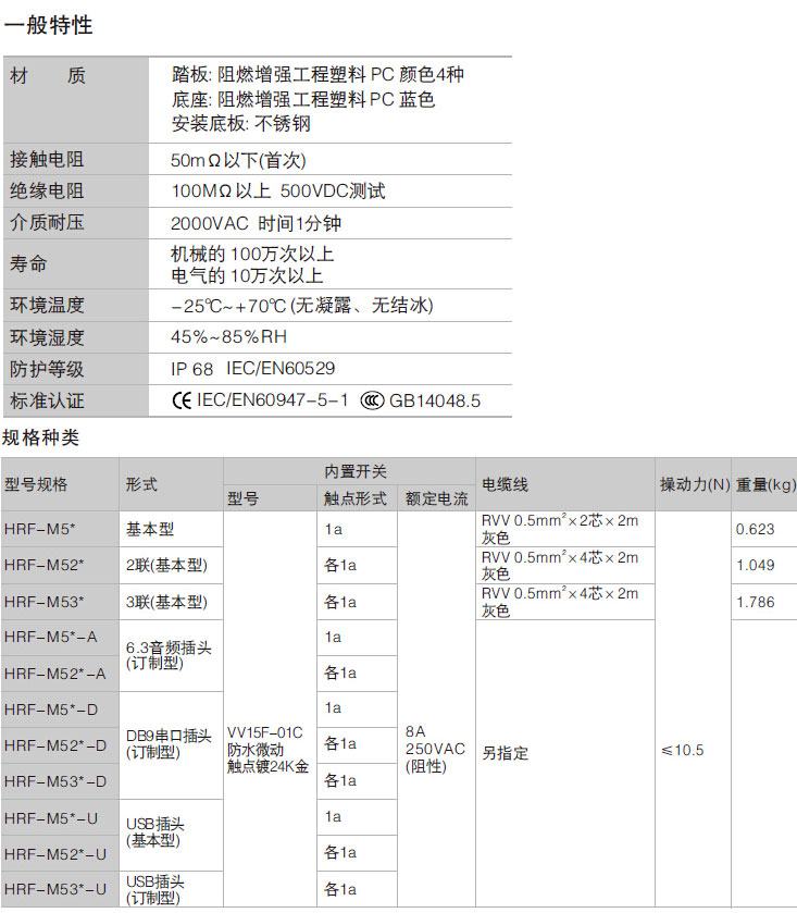 内置开关VV15F-01C基本型微动开关,银合金触点镀24K金,通过UL、C-CL、VDE、CE认证;