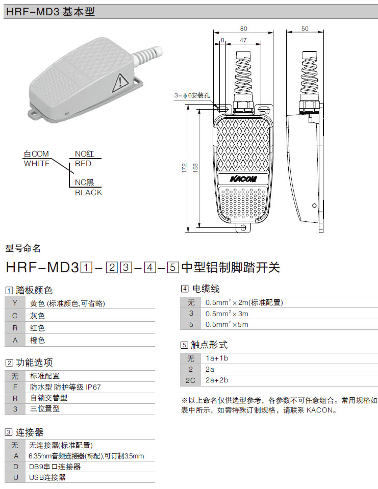 标准配置RVV 0.5mm²×3芯×2m电缆线.