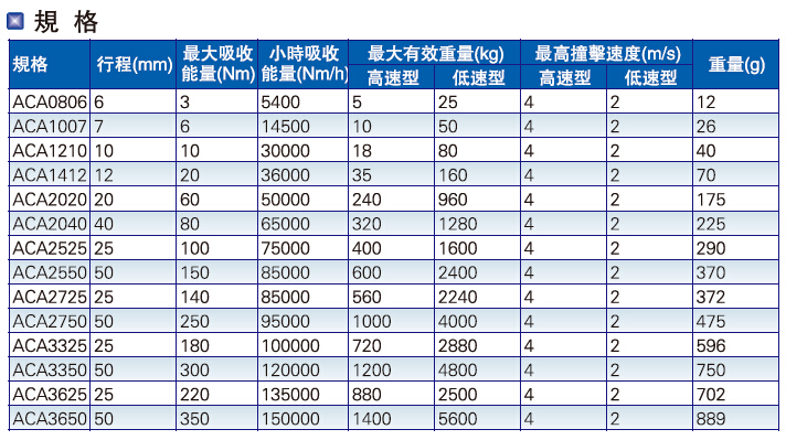 ACA系列辅助元件一一油压缓冲器