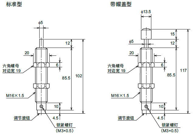 外径尺寸仅M16,外形小巧,使用时像安装螺栓一祥简单;