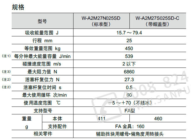 W-A2M27系列重量轻、紧凑小巧的模拟调节式两级动作螺纹型缓冲器(双级动作W型,变则多节流孔/模块调节式)
