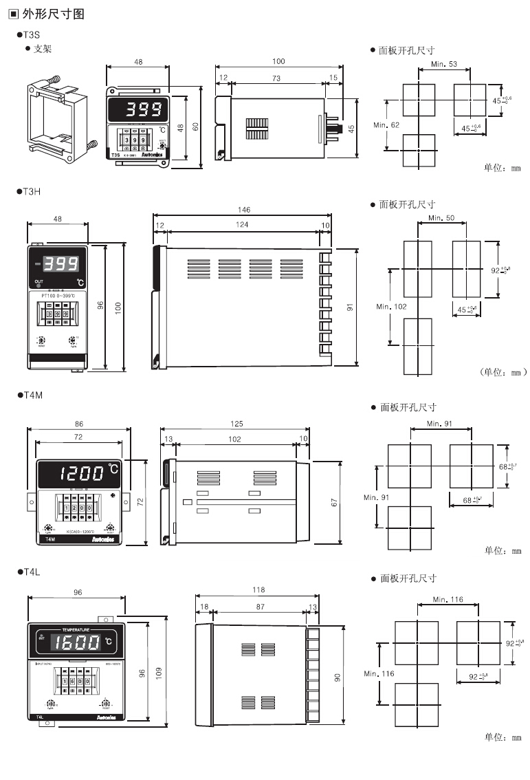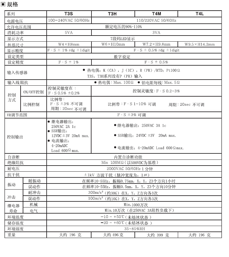 外形符合DIN规格 控制精度:F*S±0.5% 自由电源供电:T3S系列