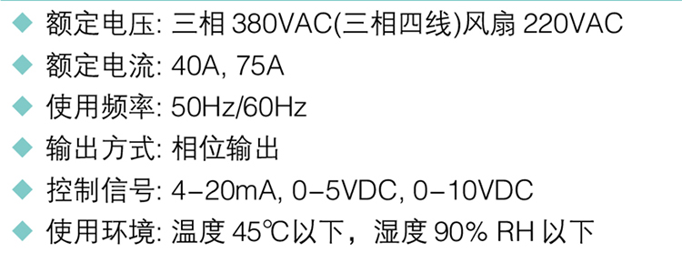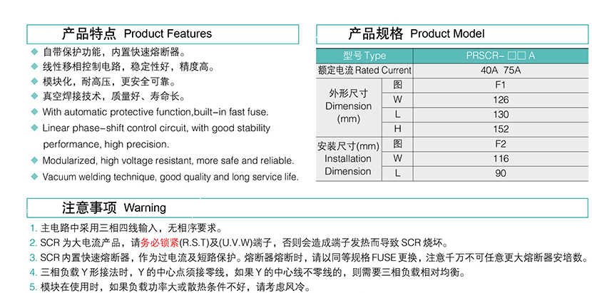 •自带保护功能,内置快速熔断器 •线性移相控制电路,稳定性好,精度高 •模块化,耐高压,更安全可靠 •真空焊接技术,质量好,寿命长