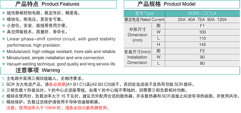 •小型化,安装,接线等使用方便 •线性移相控制电路,稳定性好,精度高 •模块化,耐高压,更安全可靠 •真空焊接技术,质量好,寿命长