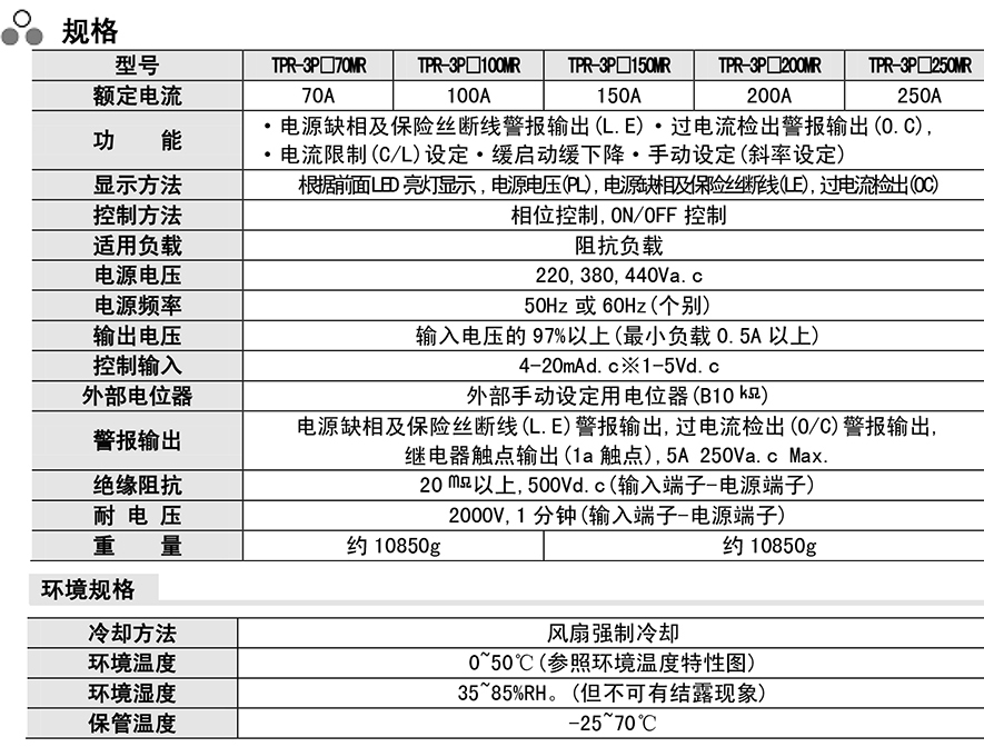 ·电源缺相及保险断丝(L.E)警报输出·过电流检出(O/C)警报输出·缓启动&缓降·电流限制(C/L)设定·内置速断保险丝