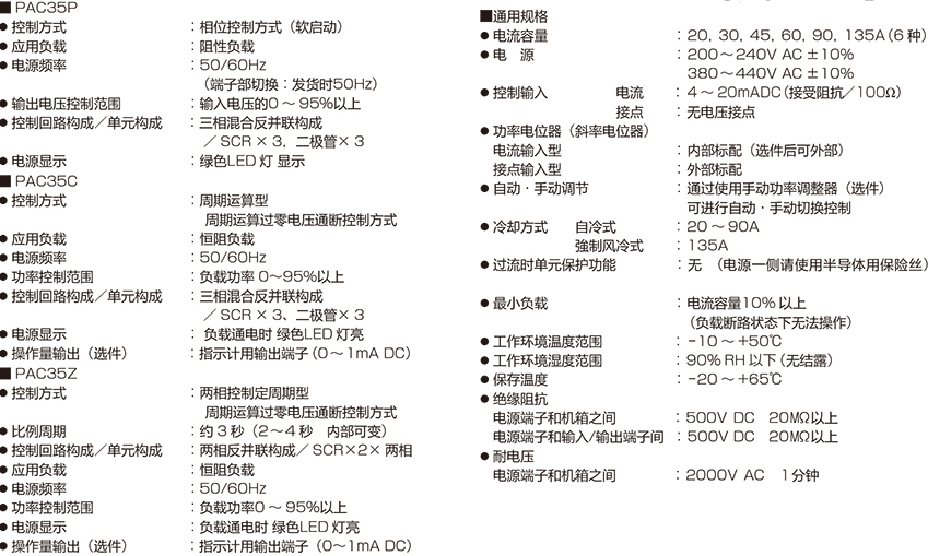 ·控制方式可从3种类中进行选择·电流容量20,30,45,60,90,135A的6种类型·电源电压200V~240V以及380V~440V的2种类型·节省空间的泛用型