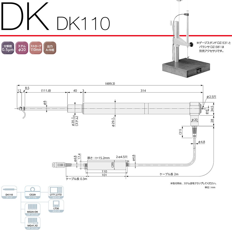 径向电缆输出轻触弹簧推动笔式传感器ATR/1/S, ATR/1/SH,DTR/2/S