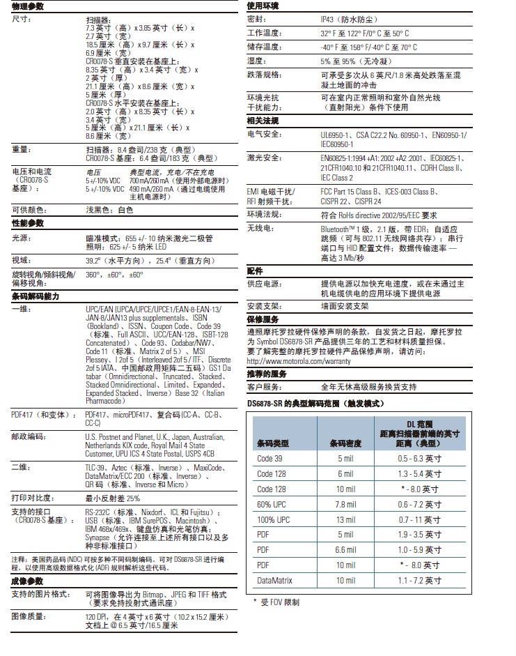 DS6878-SR无线条码阅读器提供全面的数据采集功能,帮助简化多种行业的日常应用流程,防止出错.只需这一台设备,您即可采集各种标签以及移动电话显示屏上的所有常见条码(一维、二维和PDF417),最新的蓝牙技术使产品能够实现无绳配置以及更多便利