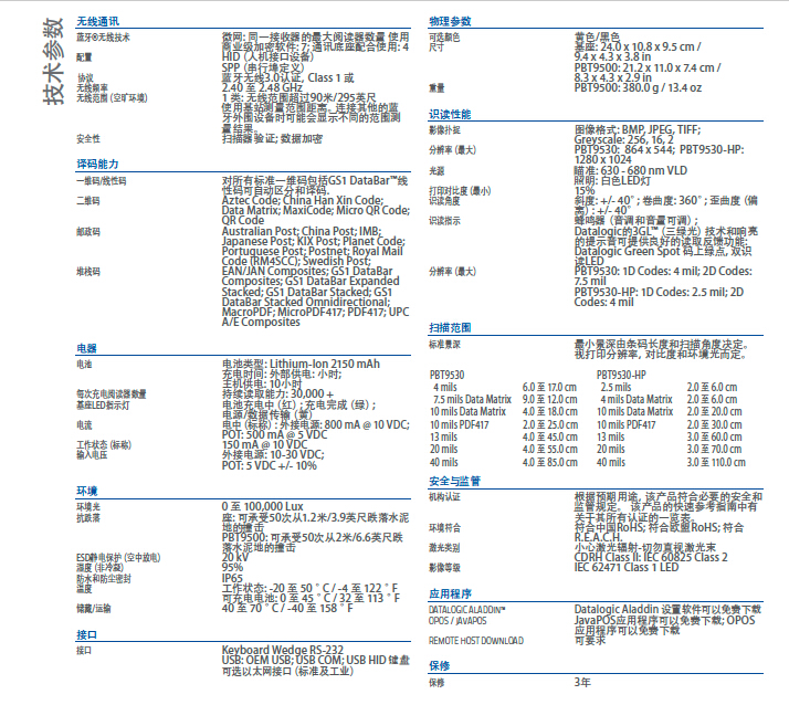 POWERSCAN PBT9500手持式二维扫描器(无线蓝牙技术)