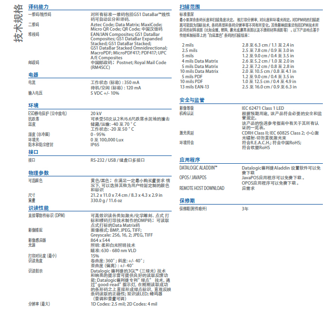 POWERSCAN DPM二维条码阅读器配备来自Datalogic的最新光学系统与软件,可更为便捷、直观地高效识读 各类DPM码.