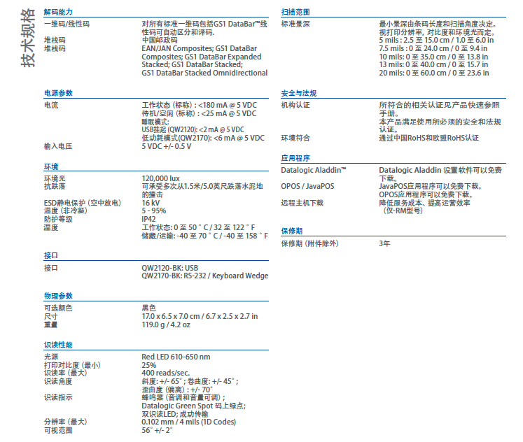 扫描器外形小巧,重量轻并符合人体工学设计,在日常操作时使用舒适.可高效读取各类一维条形码,并拥有更宽的扫描角度,非常适于扫描水电气账单中更长、更宽的条形码,也常被电子零件制造商所使用